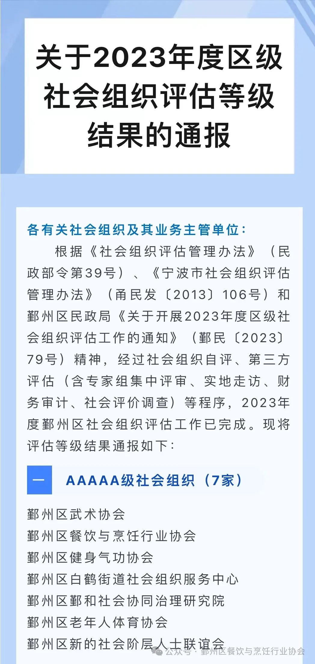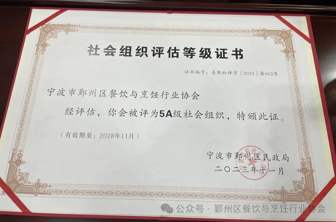 鄞州区餐饮与烹饪行业协会获评5A社会组织