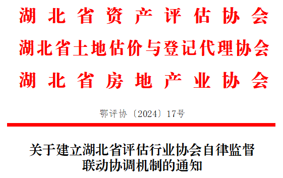 通知 | 关于建立湖北省评估行业协会自律监督联动协调机制的通知
