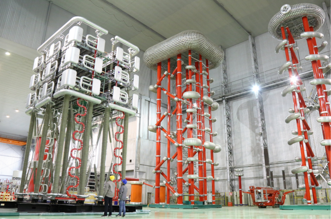 ▲国网智能电网研究院科研人员在大功率电力电子实验室测试柔直换流阀