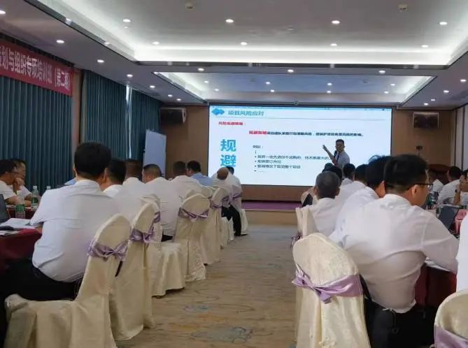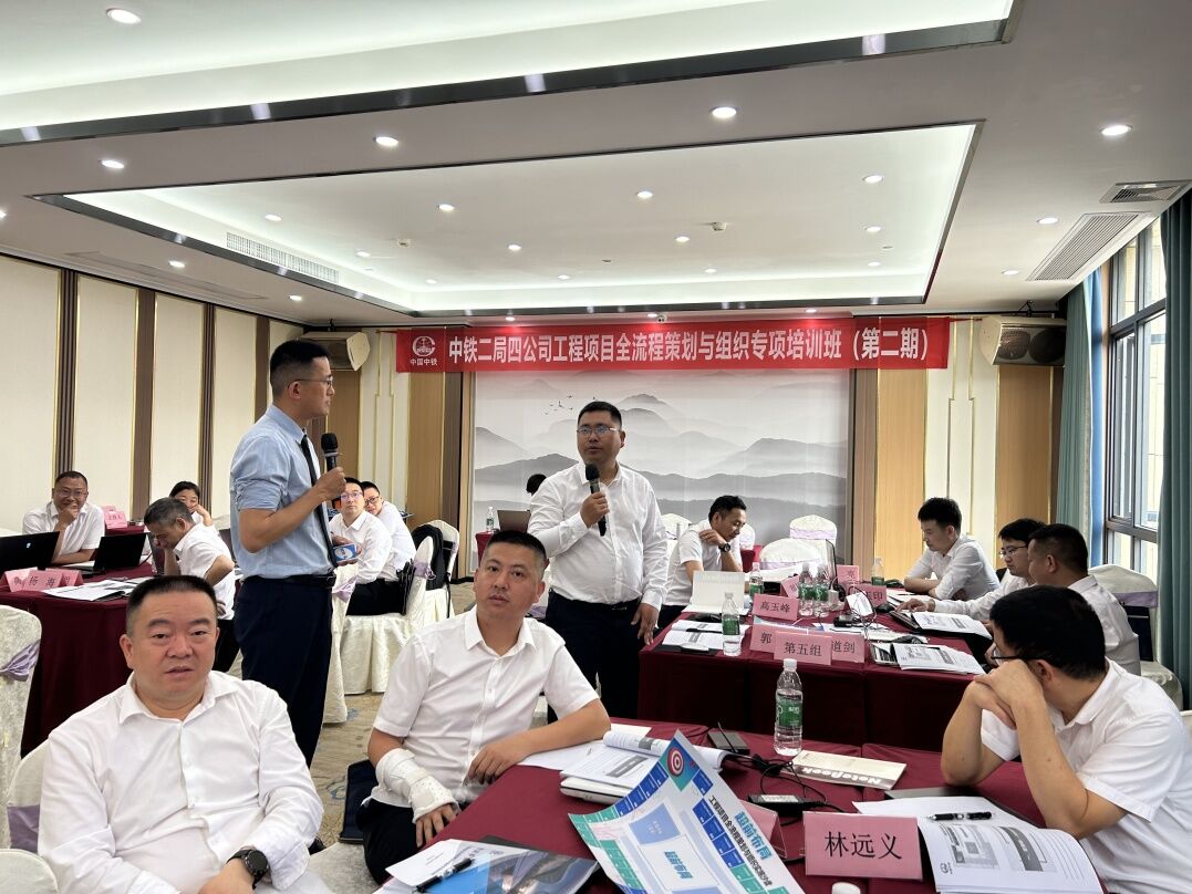 本次培训班聚焦提升项目核心管理团队能力素质,目的在于强化干部人才队伍建设,提升工程项目管理水平。在教学组织上依旧采用“集中面授+主题研讨”的形式开展培训。一是邀请中建政研专家委员会委员、企业管理效能提升专家围绕项目全流程策划与组织针对性授课,面授课程涵盖项目组织体系策划、施工部署策划、项目商务策划、安全防控策划等;二是针对提升项目策划能力,以公司广河高铁项目为对象完成项目策划书,要求学员课后进行小组专题研讨,形成汇报成果并进行专题汇报,由授课老师和现场学员进行点评;三是在培训考核上,结合学员课堂表现、汇报评分等进行综合考核,最终评选出优秀学员和优秀小组。