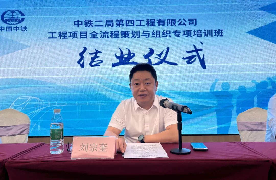2024年4月13日—14日,中铁二局四公司在广州举办了工程项目全流程策划与组织专项培训班(第二期),公司南方片区项目经理、党支部书记、总工程师共计41人参加本次培训。公司副总经理、总经济师周明朝出席开班仪式,公司总经理刘宗奎出席结业仪式并讲话。