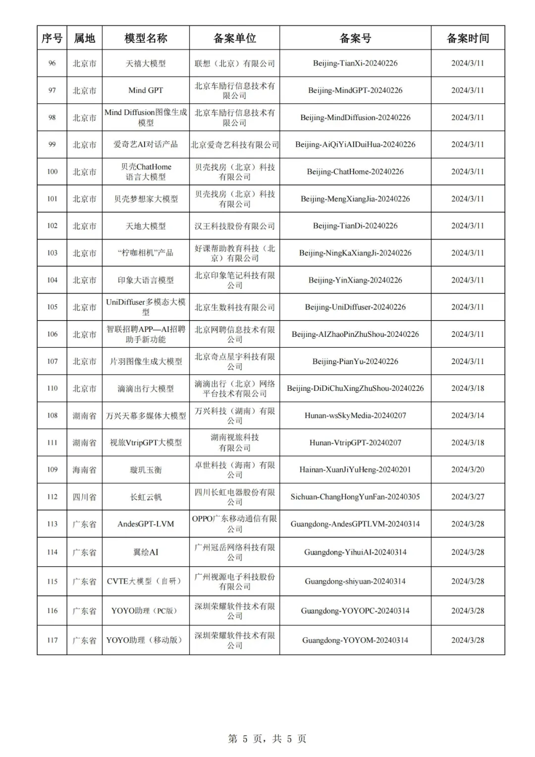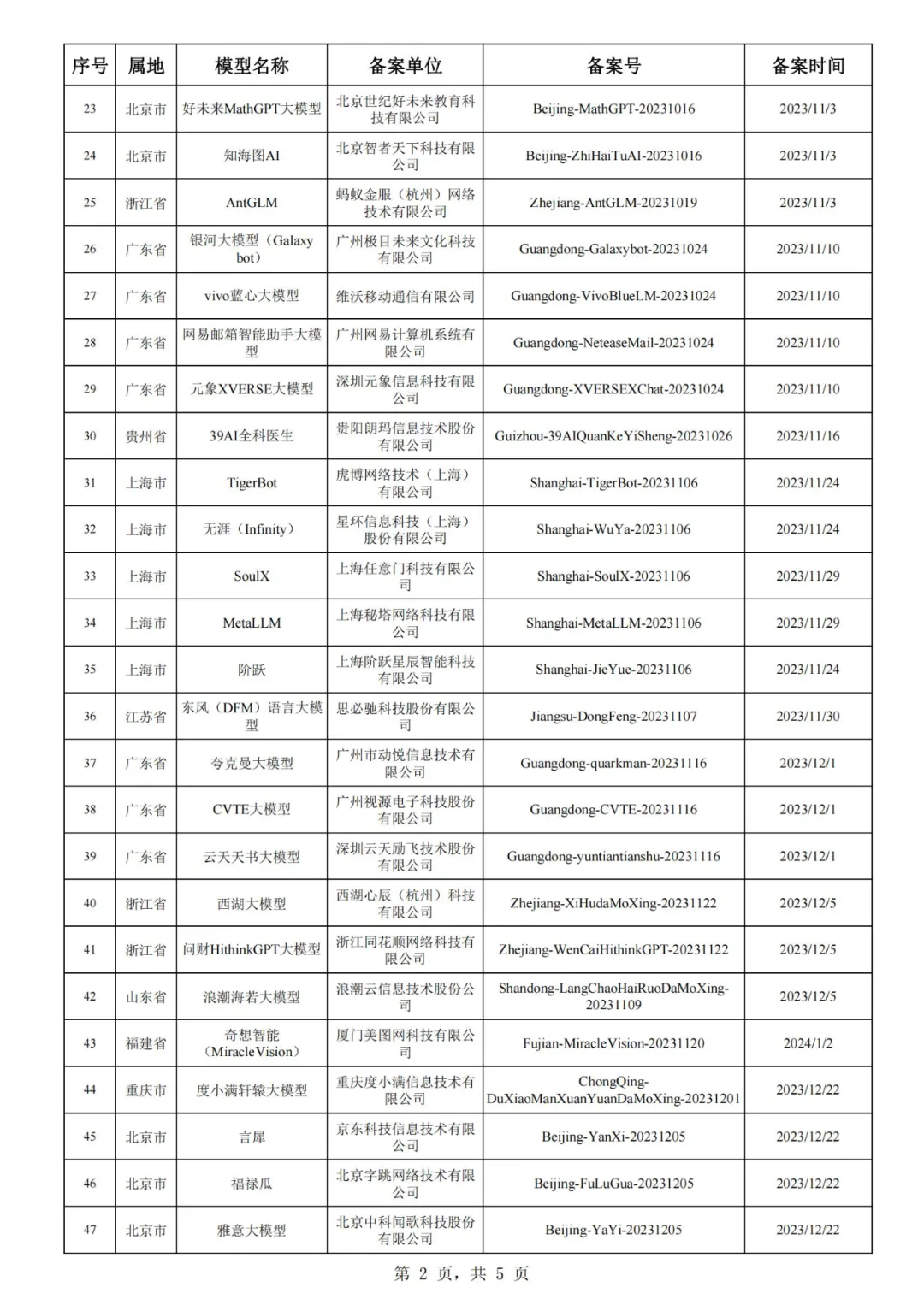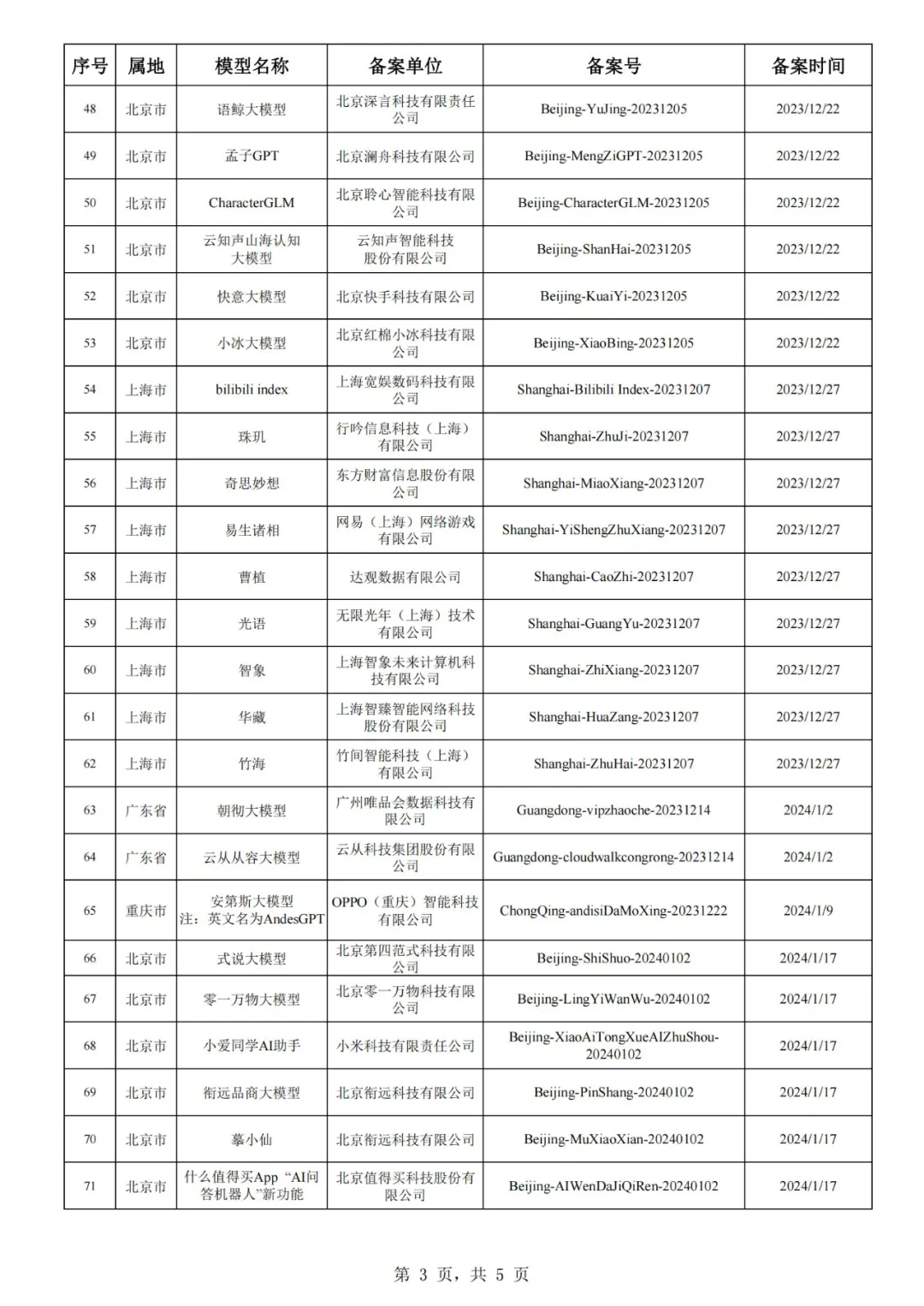 4月2日,国家互联网信息办公室公布最新的生成式人工智能备案信息。