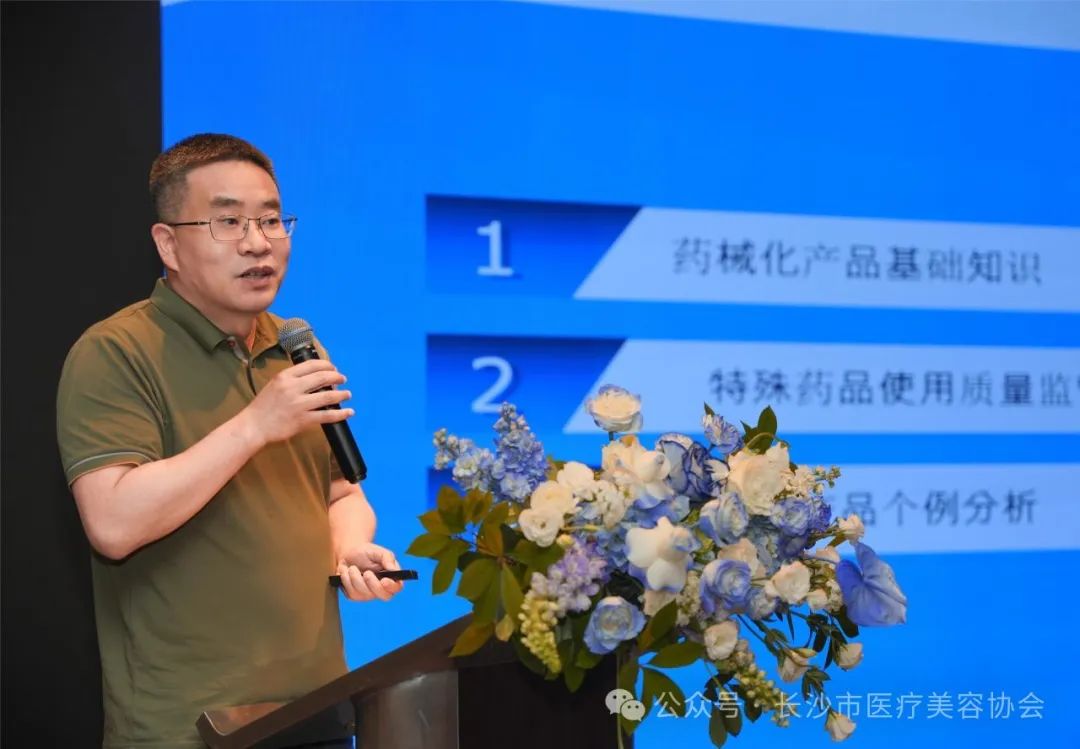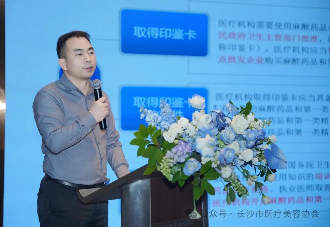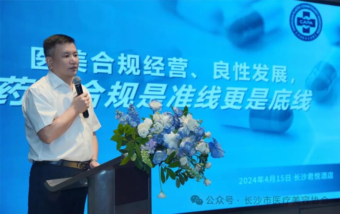 长沙市医疗美容协会会长肖征刚以《医美合规经营、良性发展,药品合规是准线更是底线》为题进行了分享,并强调了精麻药品属于特殊药品,其使用和管理必须严格遵守相关法律法规和规定,确保药品的安全、有效、合理使用。