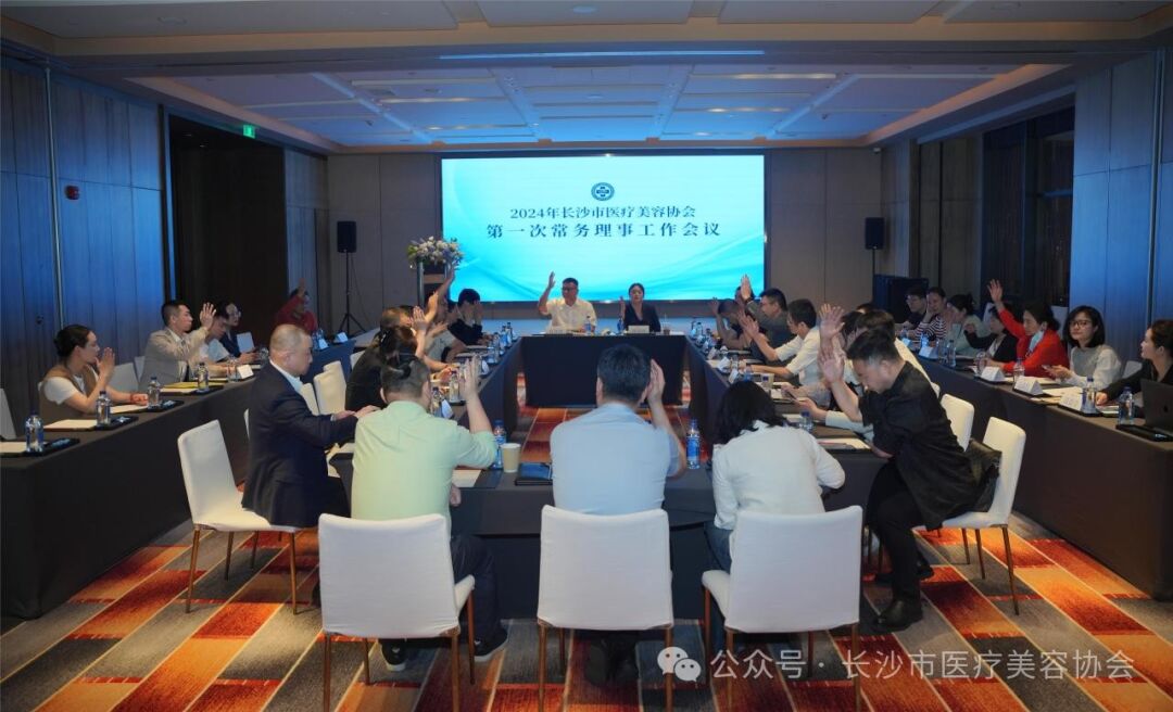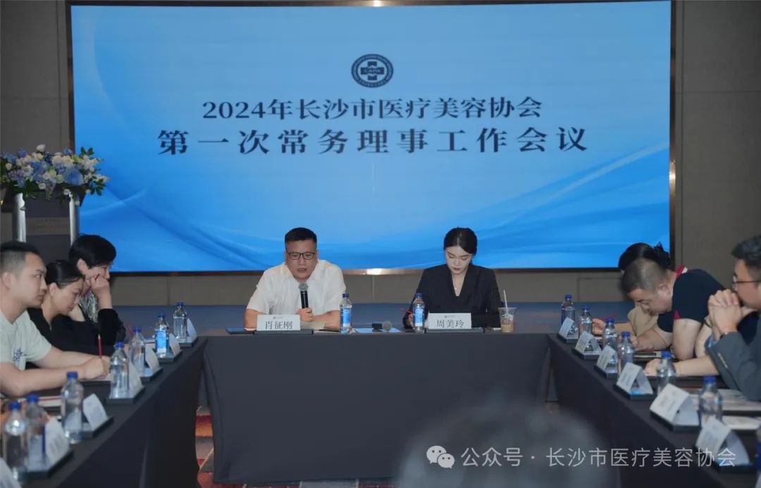 2024年4月15日,长沙市医疗美容协会2024年第一次常务理事工作会议在长沙君悦酒店召开。长沙市医疗美容协会会长肖征刚、秘书长周美玲,各副会长、常务理事出席会议。