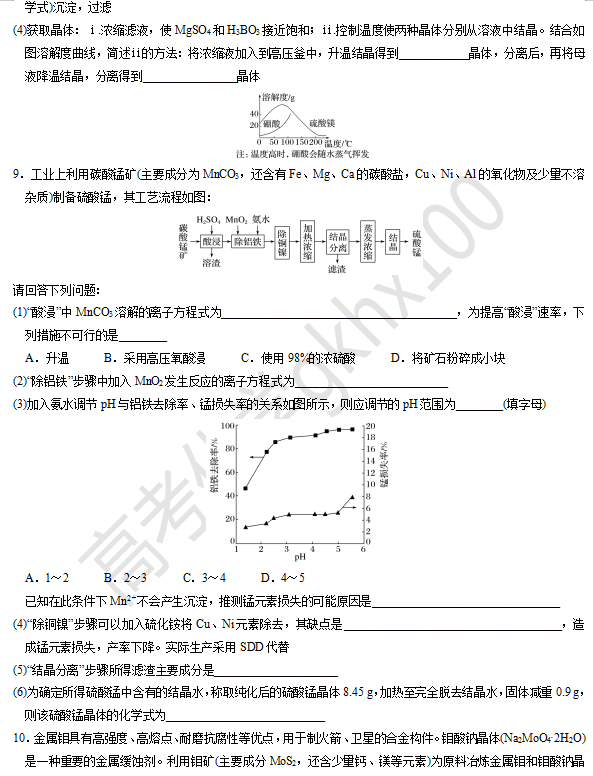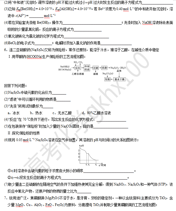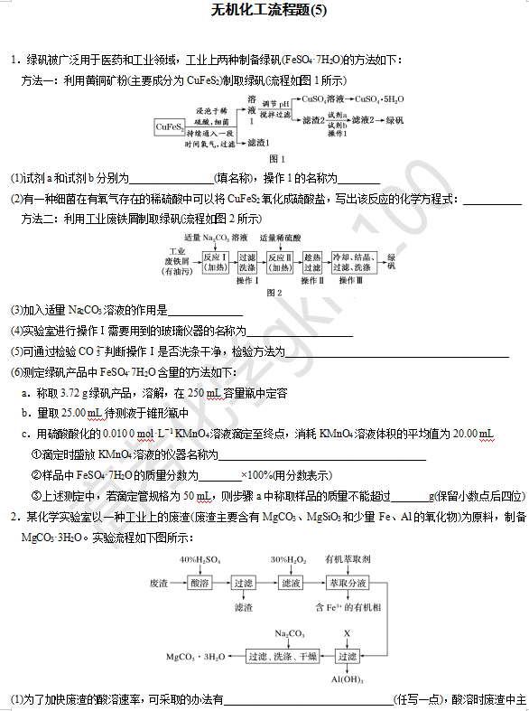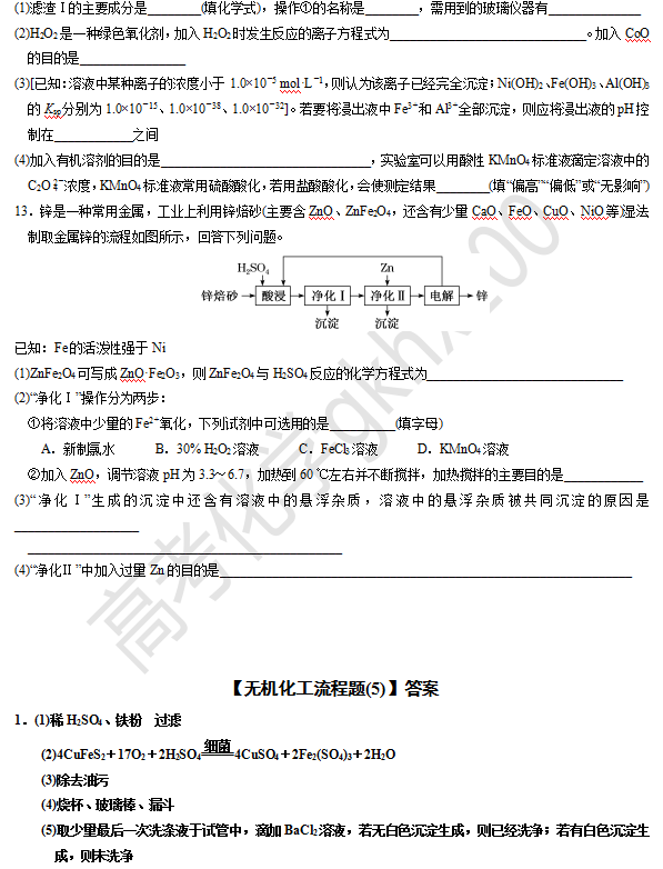 【高考化学】大题逐空突破—无机化工流程题(5)