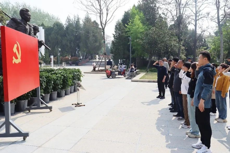 仪式结束后,大家来到焦裕禄同志纪念馆前,在鲜红的党旗下,党员们高举右手,握紧拳头,再次庄严宣誓,一句句铿锵有力、掷地有声的誓词坚定了党员同志的初心使命。