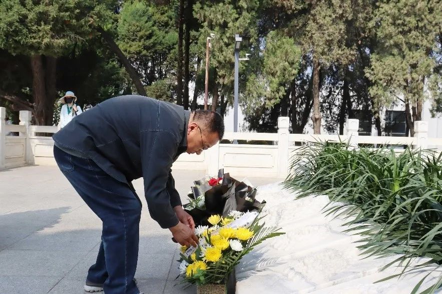 焦裕禄同志墓碑前,全体肃立,周迎军书记作为代表向焦裕禄烈士之墓敬献花篮,表达对焦裕禄同志的崇高敬意。