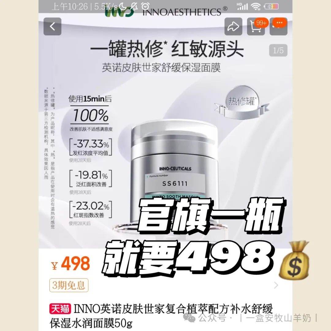 yi院里卖398五片的英诺晶萃水润面膜!