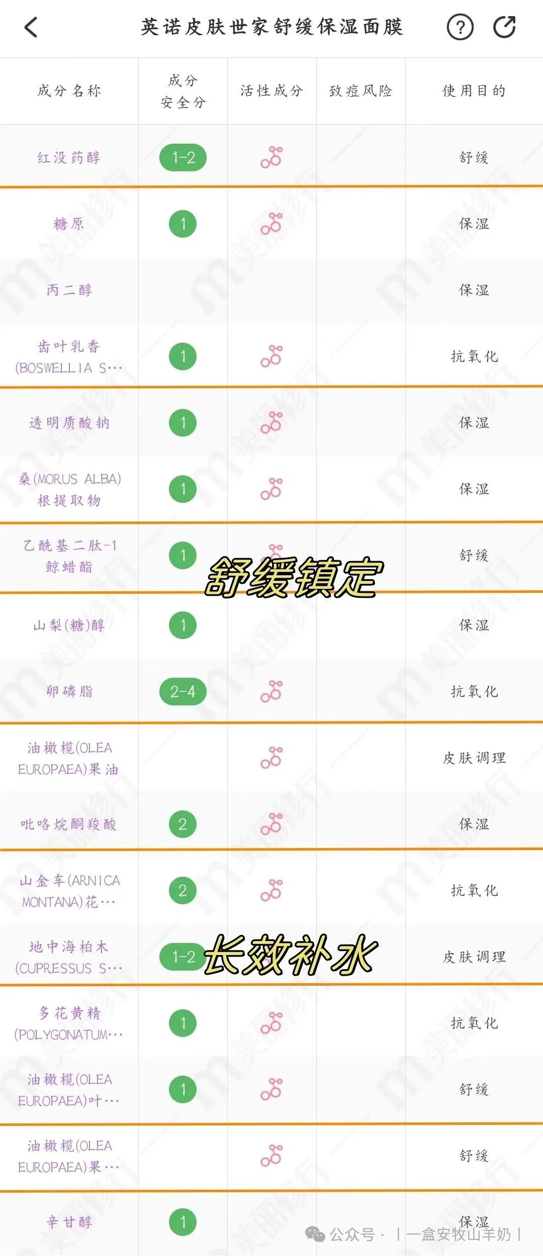 这个是因为面膜里面添加了多种的抗yan成分:红没药醇,山金车花,齿叶乳香胶等都是对皮肤有很好的抗yan效果的!