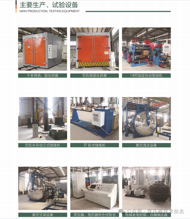 公司拥有先进、完善的变压器、电抗器、电力成套装置的生产、试验设备,主导产品有: