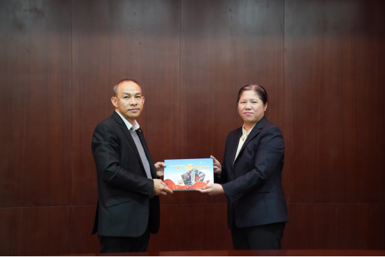 李燕向郑勇祥赠送自治区联社成立15周年纪念邮册
