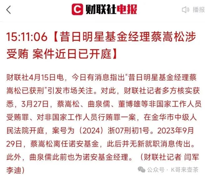 蔡总涉受贿,具体咋个回事没有透露。