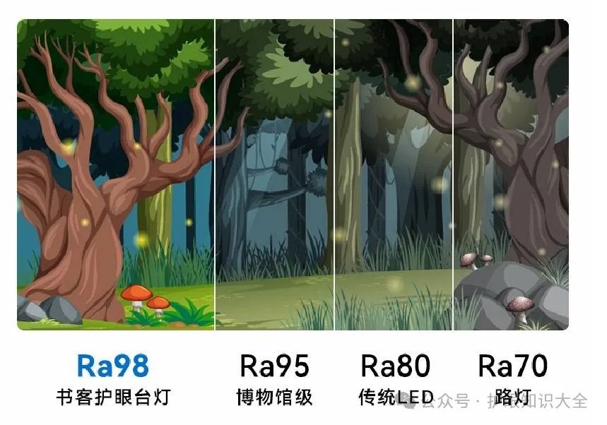 5、显色指数接近100更好:显色指数是灯光的常用参数,用来反映光源显色性的好坏,通俗来说就是物体自然原色的呈现程度。如果将物体在自然光之下呈现的色彩定义为Ra100,显色指数越接近Ra100,物体的真实还原度越好;显色指数越低,物体的真实还原度越差。