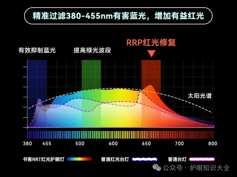 2、不仅要护眼,还要红光养眼:挑选护眼台灯,先记住一条口诀:光谱至上,红光最优!“光谱至上”是指挑选护眼台灯时,要严格考察光谱构成,蓝光要尽量低,全光谱效果更好;“红光最优”是指,光谱最好能增强有益红光。