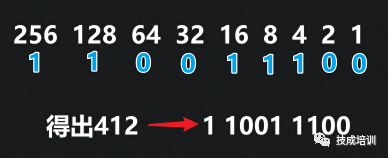最后将有效位置写1,无效位置写0,得到412的二进制数为11001 1100。