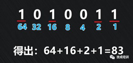 最后,将有效数字相加,得到64+16+2+1=83;