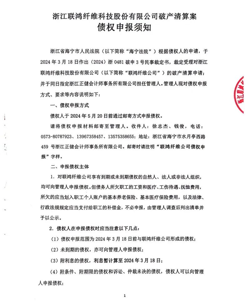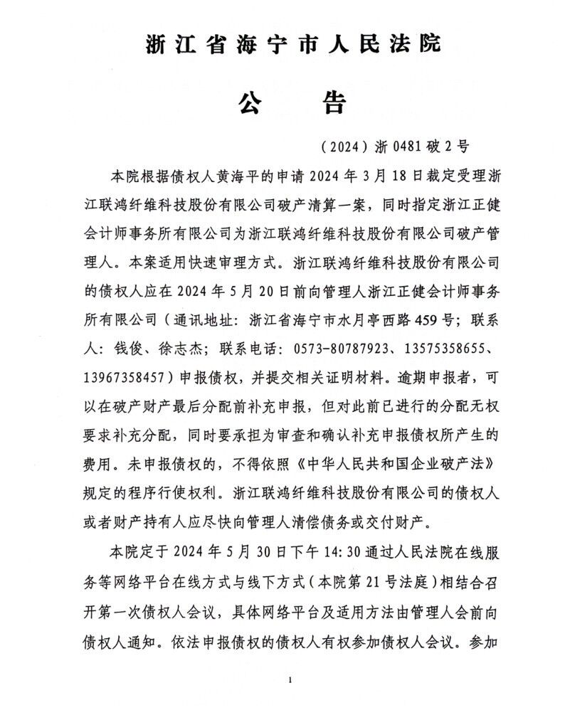 今年的纺织行情差强人意,纺织企业也是经营压力巨大,不少知名的纺织企业都面临经营困境,甚至破产清算。据企查查资料显示,浙江联鸿纤维科技股份有限公司成立于2010-08-02,法定代表人为潘生根,注册资本为20000万元人民币,企业地址位于浙江省嘉兴市海宁市尖山新区安仁路28号,所属行业为科技推广和应用服务业,经营范围包含:混纺纱、纯化纤纱的技术开发、制造、加工;针纺织品及原料(不含鲜茧和籽棉)批发、零售;经营本企业自产产品的出口业务和本企业生产所需的原辅材料、机械设备、零配件及技术的进口业务。