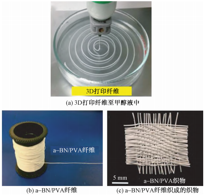 此外,3D打印制造纤维的材料选择对服装的美学、舒适性、耐用性和实用性也有较大影响。通过3D打印聚乙烯醇与氯化硼纳米片得到了一种具有导热属性的纤维,首先将分散体通过3D打印挤出到冷却的甲醇溶液中,然后进行干燥和热拉伸处理,所得到的纺织品具有良好的力学性能,导热性,目前已用于制作具有热调节功能的服装。