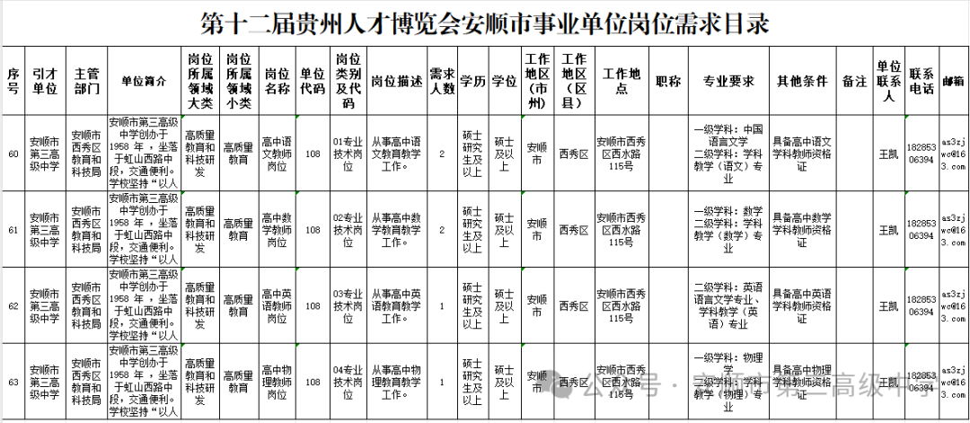 岗位发布地点:贵州人才博览会官网(https://rc.guizhou.gov.cn/)。