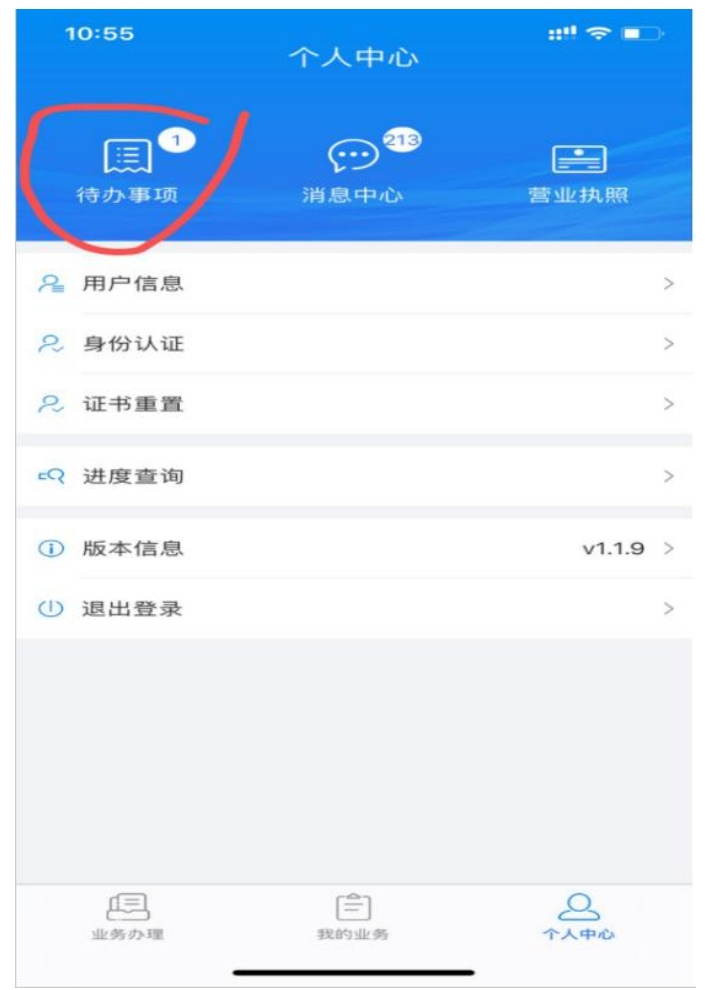 第六步:到个人中心,查看待办事项