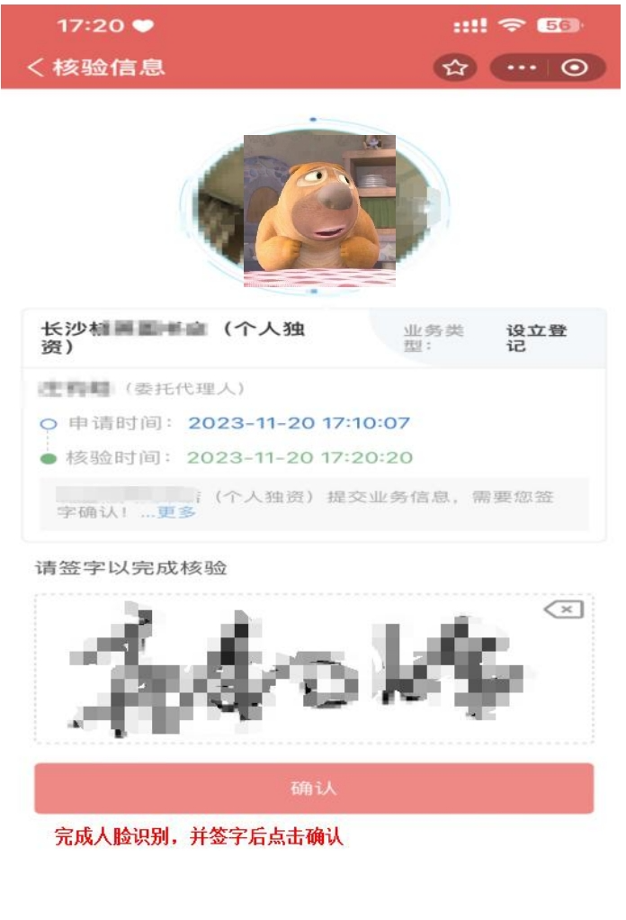 第十二步:完成人脸,并签字后点击确认