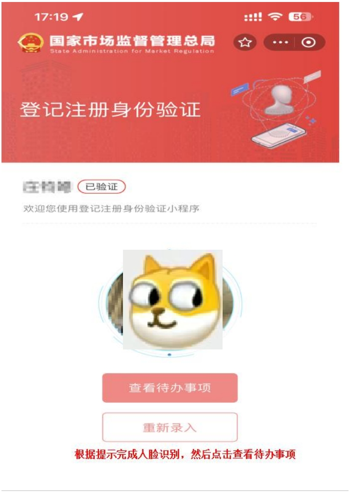 第十步:根据提示完成人脸识别,然后点击查看待办事项