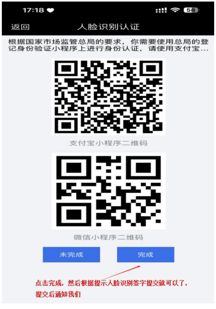 第十五步:点击完成,然后根据提示人脸识别签字提交就可以了,提交后通知对接人,或截图发对接人。