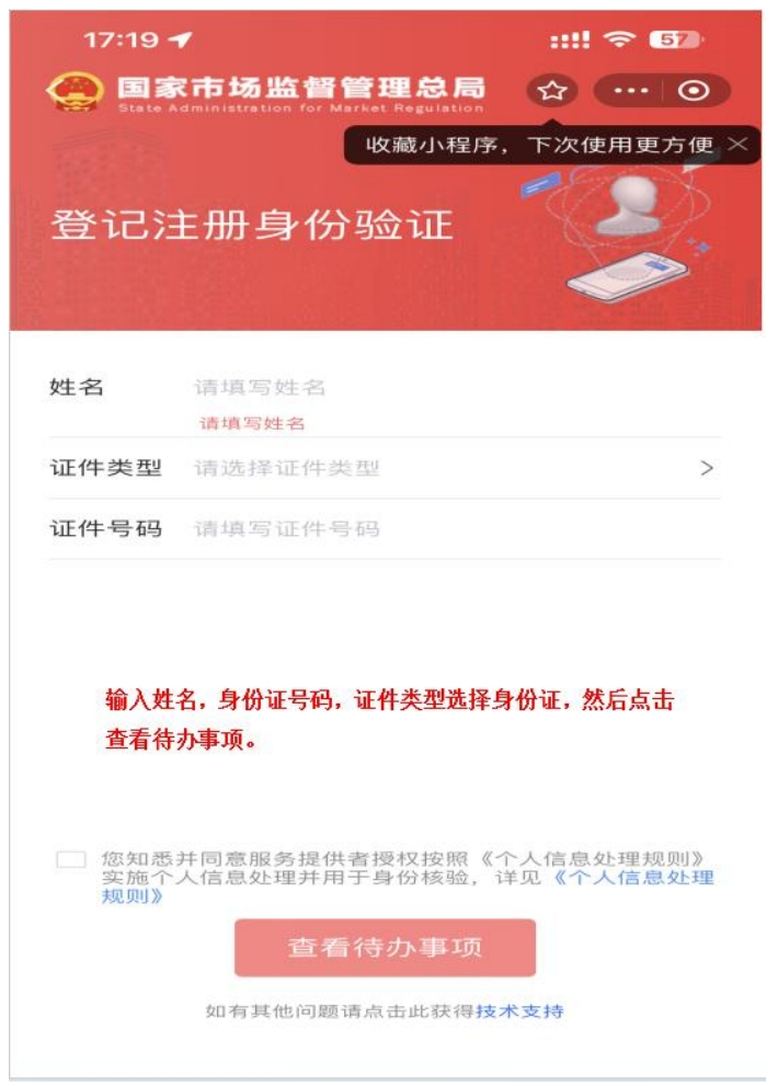 第九步:输入姓名、身份证号码,证件类型选择身份证,然后点击查看待办事项