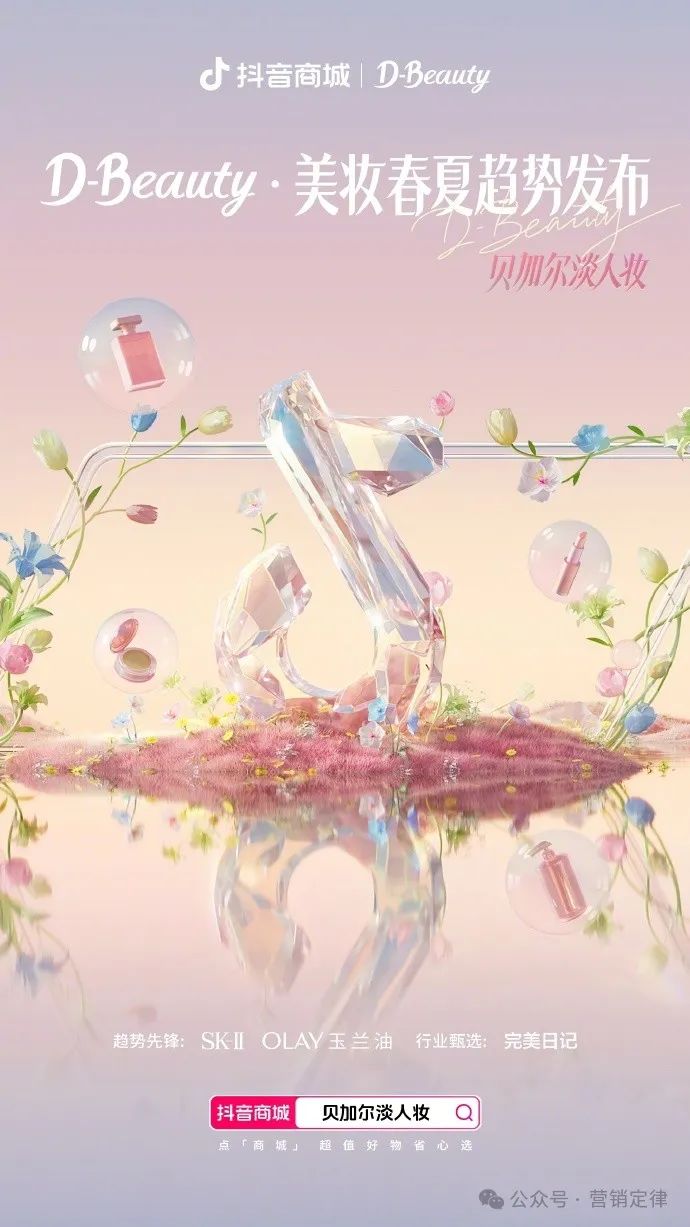 在 3 月 27 日至 4 月 7 日,抖音商城打造「美妆春夏趋势发布」美妆品类专场,并发起#贝加尔淡人妆#互动话题,邀请美妆博主参与妆容打卡挑战,共创「淡人」的盎然春天。