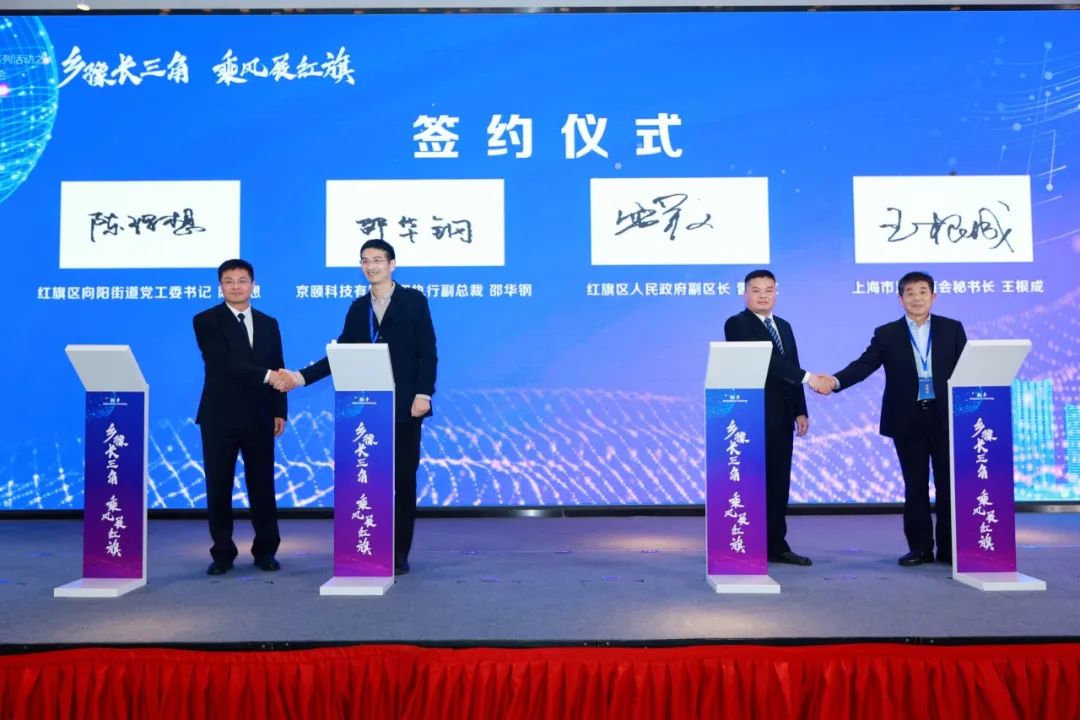 推介会上,新乡市红旗区政府和上海市河南商会签订《招商合作协议》。同时,红旗区与上海市河南商会结成紧密战略合作伙伴后的首个签约项目:河南京颐科技软件实施交付中心项目签约。