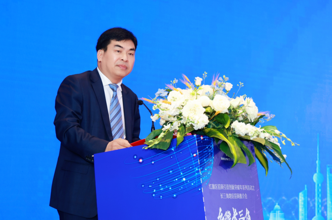 刘宏锋在致辞中表示,今天,相聚在美丽的世界名城、东方明珠——上海,与长三角地区商业精英、行业翘楚共叙情谊、共话发展。红旗区是全国唯一以红旗命名的行政区,是新乡市的主城区、核心区,全市政治、经济、文化、金融、科教中心。地区生产总值和财政收入均居全省第一方阵,是全省综合实力十强区。营商环境连续两年居全省54个市辖区第三名;公众安全感连续三年位列全省前六名。红旗区完整、准确、全面贯彻新发展理念,掀起大开放、大招商、大投资、大建设、大发展热潮,建设现代化“幸福红旗”“首善之区”。聚焦高质量发展这一首要任务,坚持项目为王、创新驱动,发展新质生产力,持续推动经济实现质的有效提升、量的合理增长、势的蓄积壮大,正在成为创新创造的沃土、投资兴业的热土、宜居宜商的乐土。希望通过此次推介会,让大家更加全面深入感受河南之美、新乡之新、红旗之进,在“各美其美、美美与共”中携手共赴美好未来。我们将秉承“项目为王、企业为上、企业家为大”理念,用心用情用力当好“金牌店小二”、做好“首席服务员”。