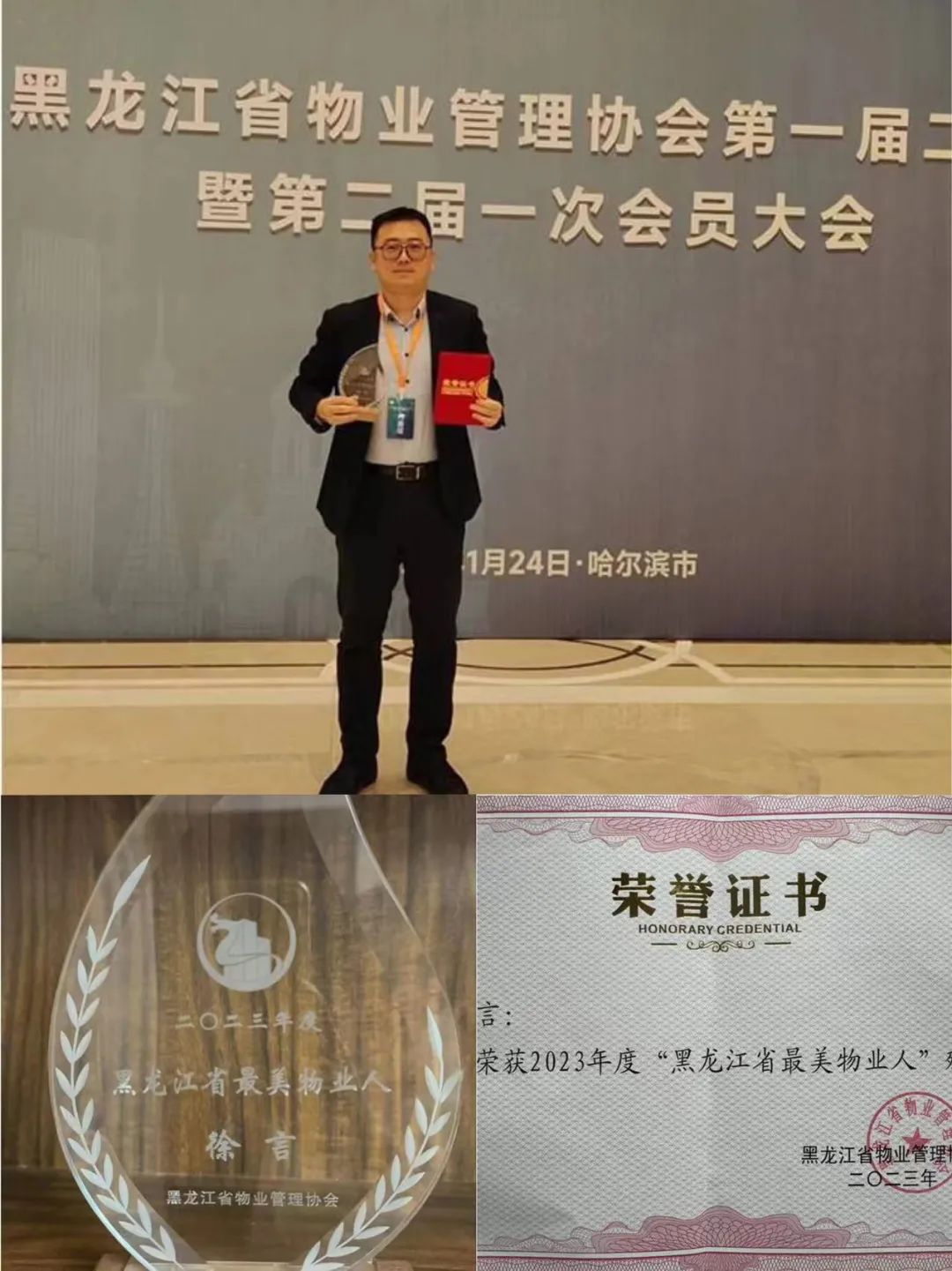 近日,黑龙江省物业管理协会组织开展了2023年度黑龙江省“匠心及优秀服务项目”暨“最美物业人”选树活动,评选出9个“黑龙江省匠心物业服务项目”,27个“黑龙江省优秀物业服务项目”,14个“黑龙江省优秀物业服务项目(老旧)”,73个“黑龙江省最美物业人”。国投公司城市物业住宅事业部经理徐言,因全力保障业主的各项服务需求,坚持以高标准、高品质持续为业主提供更加贴心、高效、优质的物业服务,获得“黑龙江省最美物业人”荣誉。