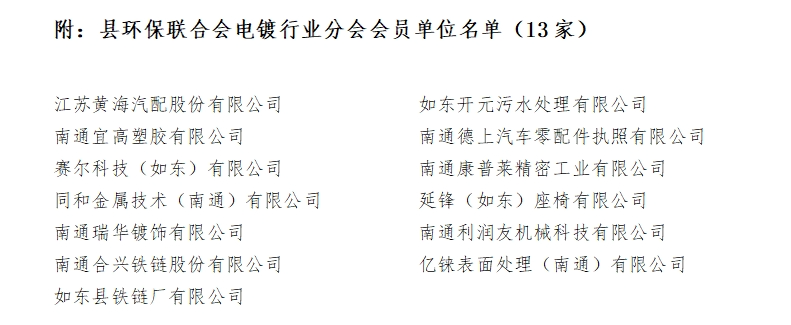 如东县环保联合会电镀行业分会