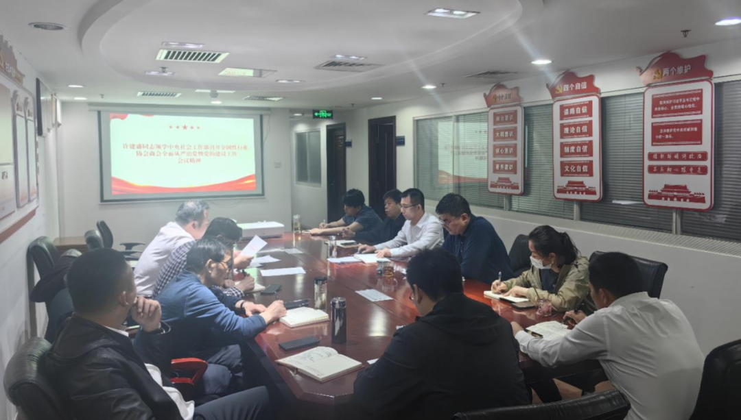 许建盛传达了中央社会工作部全国性行业协会商会全面从严治党暨党的建设工作会议精神。他指出,这次会议全面落实党的二十大和二十届二中全会精神,认真落实二十届中纪委三次全会精神,研究部署推进全面从严治党、加强党的建设工作,动员部署党纪学习教育工作,对于推进协会全面从严治党,坚持党的领导加强党的建设具有十分重大意义,影响深远。协会要提高站位,深刻把握形势任务要求,切实把思想和行动统一到党中央和中央社会工作部部署决策上来,认真贯彻落实会议精神。要加强自身建设,打铁还需自身硬,紧绷纪律意识,增强自身监督执纪能力,增强严肃执纪紧迫感,从严从实抓好党支部建设,加强学习型党组织建设,强化意识形态工作责任,加强相关保密工作,推动协会党支部工作更好引领协会高质量发展取得新成效。要做好党纪学习教育相关工作,严格按照党中央和中央社会工作部的相关要求开展学习教育工作,结合协会自身情况,开展廉政风险点排查和防控措施工作,推进协会全面从严治党走向新高度。