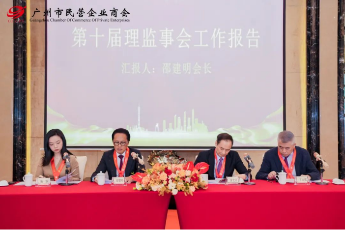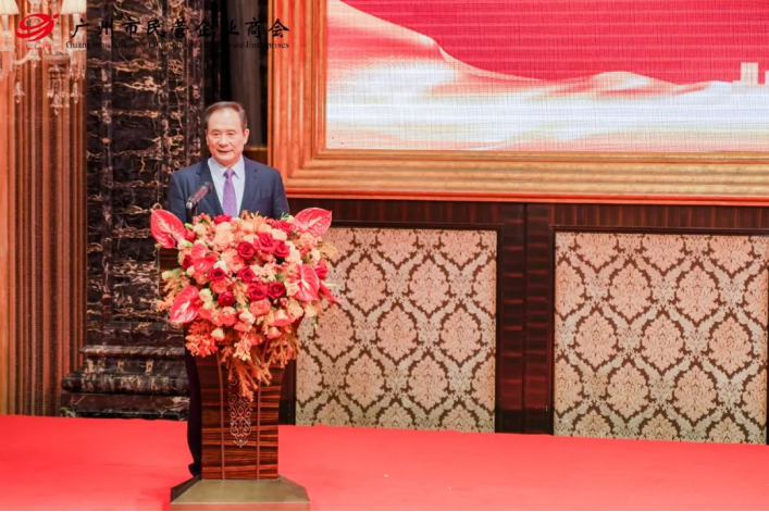 黄文仔会长发表致辞,“过去五年,第十届理监事会始终坚持,用心服务民营企业、全力促进民营经济发展。在上级部门的关心指导下,在全体会员的共同努力下,商会工作得到社会各界好评,荣获广州市“5A级”社会组织、全国“四好”商会、广东省“四好”商会、广州市“四好”商会等荣誉。未来我们将全面围绕落实省委“1310”具体部署和市委“1312”思路举措,继续稳中求进、积极创新开拓、努力实现高质量发展,在新中国成立75周年之际,彰显民企新风采,实现民企新作为!”