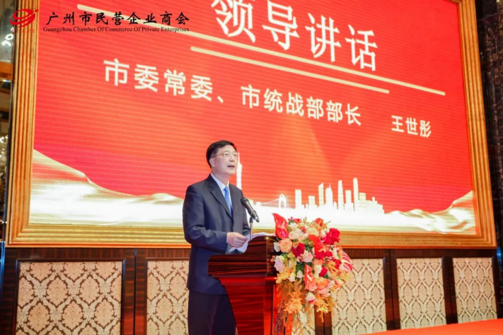 王世彤常委发表讲话,“广州市民营企业商会建会35年以来,始终秉承服务会员、服务经济、服务社会的宗旨,在团结凝聚穗商、开展慈善事业、联动促进发展等方面做了大量卓有成效的工作,为广州经济社会发展作出了积极贡献,成为全省乃至华南地区具有广泛影响力的商会组织。希望各位企业家朋友进一步增强发展信心,继续深耕广州、扩大布局,继续坚守主业、做强实业,统战部门、工商联系统要履行好指导职责,支持和帮助商会工作,把商会建设好、发挥好,共同为广州高质量发展作出新的更大贡献。”