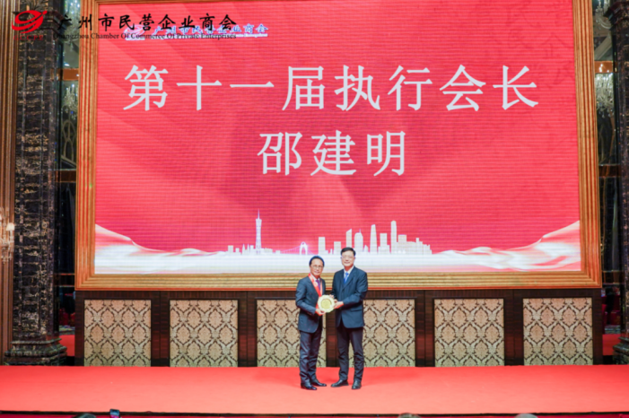 邵建明执行会长表示,“市民商会35载建会史,始终以服务民营企业为宗旨、以促进民营经济发展为目标,凝聚穗商、联通民企,屡次荣获多项全国、省、市级荣誉称号,会务发展受到社会各界一致赞誉。实践证明,广州市民营企业商会根基厚实、品牌隽永、全会汇聚众多行业龙头,会员企业敢拼善为,勇闯民营经济改革发展浪潮,越是艰难越向前,是一家凝聚力十足、活跃性十足、创新性十足的商会。未来,商会将全面围绕落实省委“1310”具体部署和市委“1312”思路举措办会,不辜负大家的期望和信任,与各位理监事会成员携手共同为商会创造更大的辉煌!”广州市民营企业商会理监事会换届会员大会暨第十一届理监事一次会议在下午结束之后,当天晚上,广州市民营企业商会第十一届理监事会就职典礼在星河湾半岛酒店成功举行。广州市委常委、市委统战部部长王世彤;广州市工商联专职副主席兼秘书长熊鹰;广州市非公经济组织党委书记、市工商联商会党委书记杨丹;广州市委统战部非公经济工作处处长杨学军;龙岩市政协副主席、工商联主席郑玉琳;原市场监督管理局二级巡视员、市小微企业个体工商户专业市场党委书记陈洪强;张家界武陵源区政协副主席戴小芬;我会会长黄文仔、执行会长邵建明、监事长王永辉等近220名领导及嘉宾出席活动。