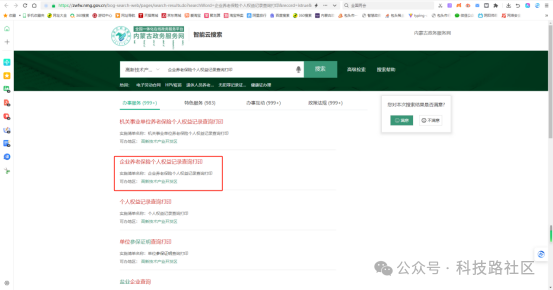 第二步:在搜索框搜索“企业养老保险个人权益记录查询打印”,选择对应事项。