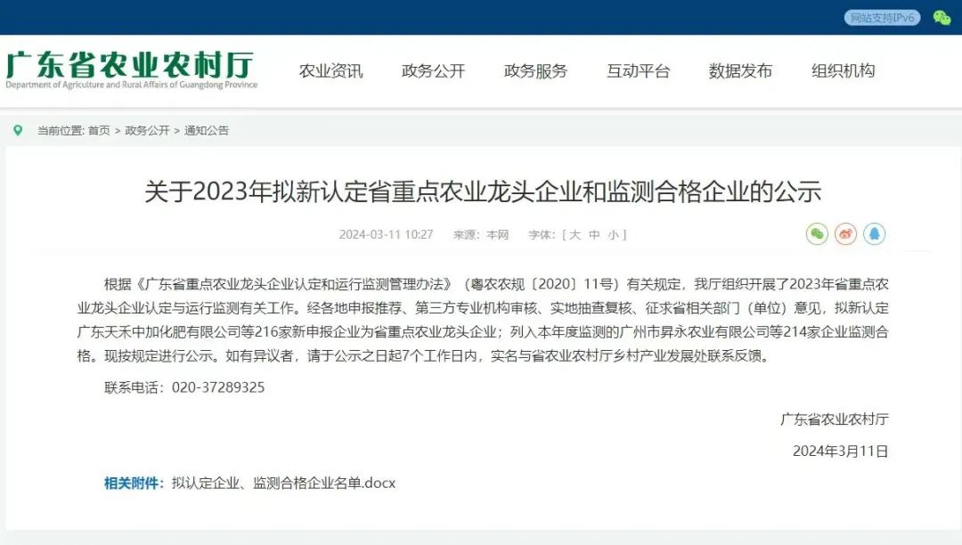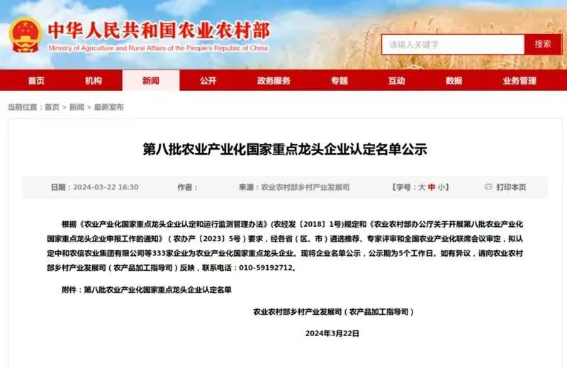 广东省农业农村厅官网近日也发布《关于2023年拟新认定省重点农业龙头企业和监测合格企业的公示》,拟新认定216家新申报企业为省重点农业龙头企业,其中汕头拟新认定为省重点农业龙头企业有8家,金平区的汕头市大发水产养殖有限公司在列。