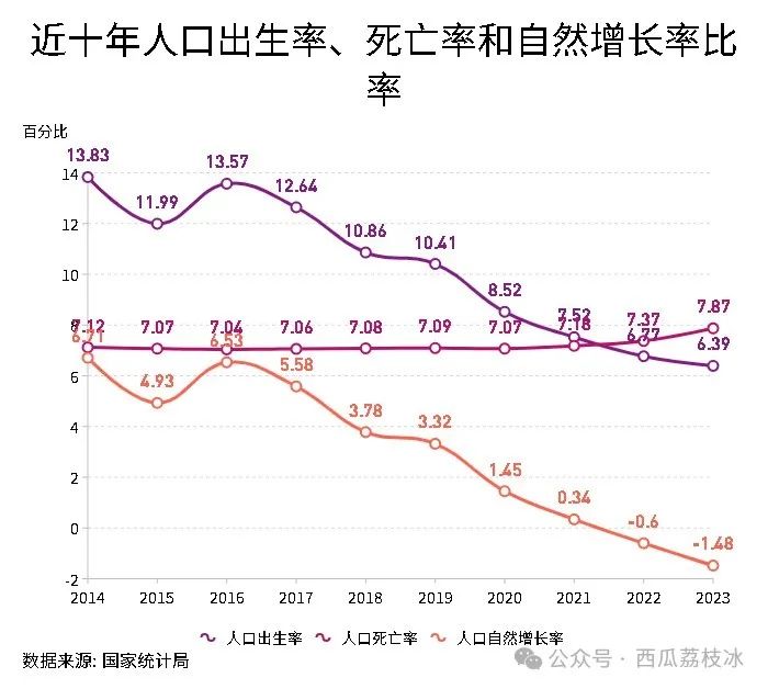 为什么殡葬专业毕业生会这般吃香?国家统计局公布的近十年人口数据统计,给出了答案。在2014年,我国人口出生率和死亡率分别是13.83%和7.12%,在2023年,我国人口出生率下降至6.39%,死亡率则是7.87%。