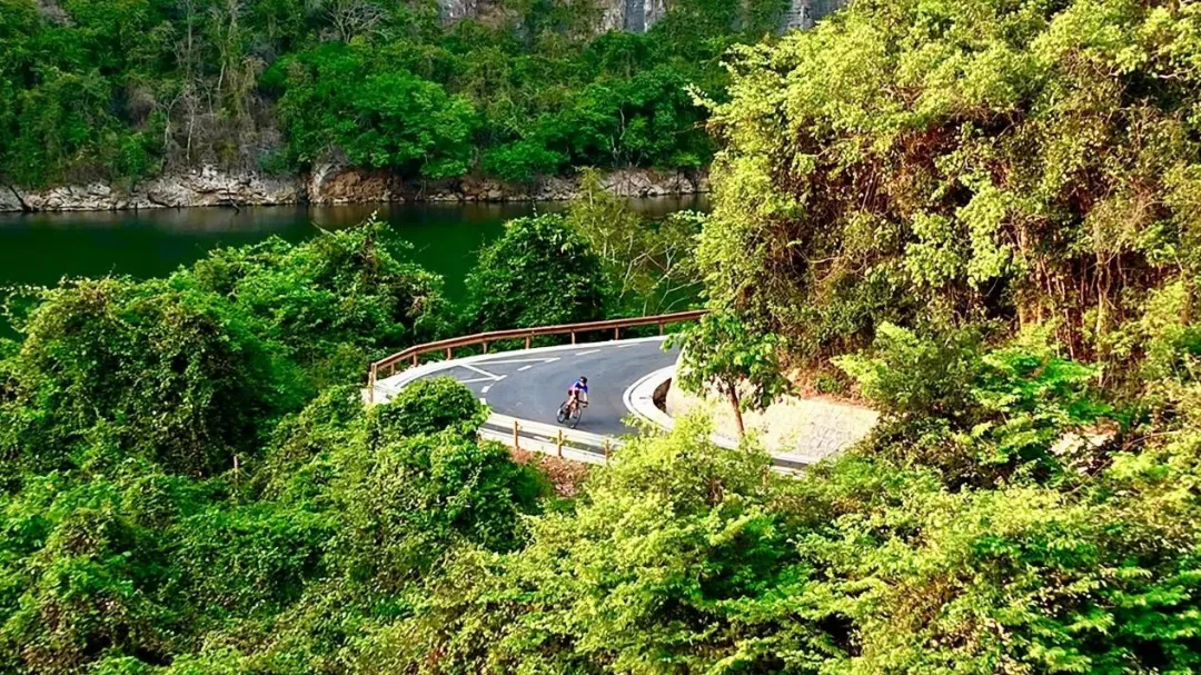 在昌江王下乡的环山公路,阳光洒在蜿蜒的道路上,骑行者穿梭于葱郁林荫下的蜿蜒小道,在皇帝洞的神秘气息中探索,在十里画廊的田园诗意间悠然骑行,又或是攀爬至霸王岭之巅,俯瞰层峦叠翠的全景画卷。这里还是热情好客的黎族同胞群居地,如果刚好遇上载歌载舞的黎族同胞,请一定在此停留,他们将用真诚的笑容邀你一起,为骑行之旅增添一份别样的乐趣和体验。