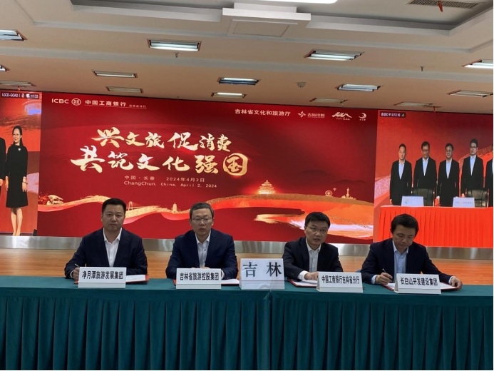 4月2日,文化和旅游部与中国工商银行战略合作协议签约活动在京举办。吉林省旅游控股集团与中国工商银行吉林省分行在吉林分会场同步签署战略合作协议。吉林省旅游控股集团党委书记、董事长孟庆凯,党委副书记、总经理刘超出席活动。