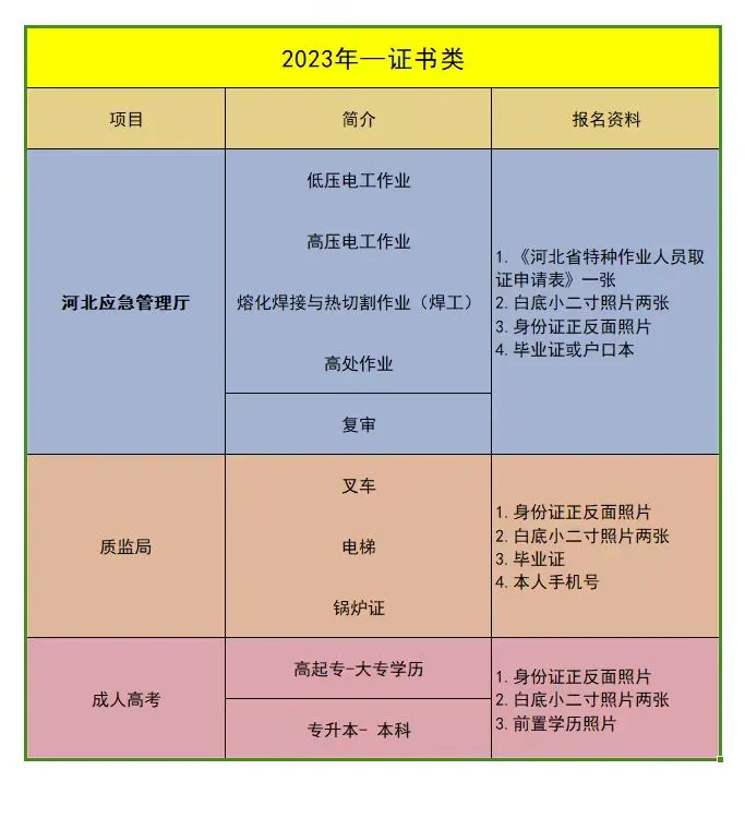 焊工、高处作业、高压电工、低压电工等,强化培训班,快速取证,现开始报名啦 ! 新一流培训开启,一次过!欢迎有意向的学员抓紧报名联系,越来越难考,抓住机会报名电话:17317087217(同微信) 0311-88212538