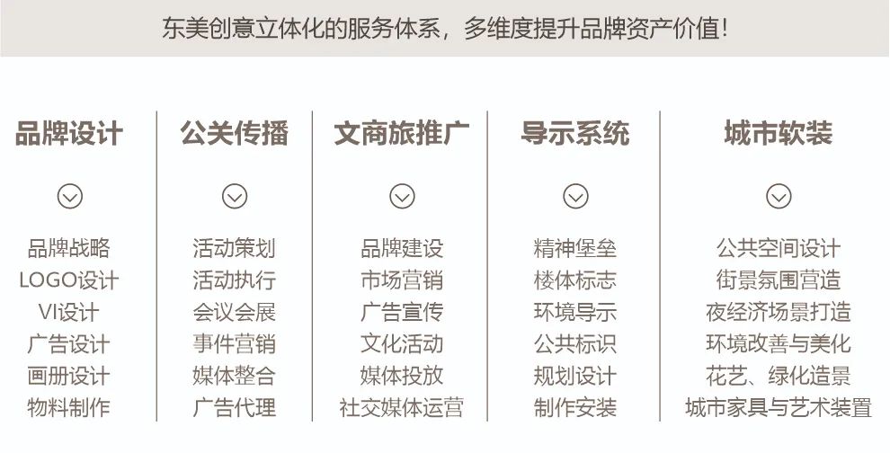 未来,东美创意在专业领域不断精进,继续践行“助力品牌更有价值!”的企业精神,以专业的服务和卓越的创意服务好每一个客户。我们期待与您携手共进,共创美好未来!