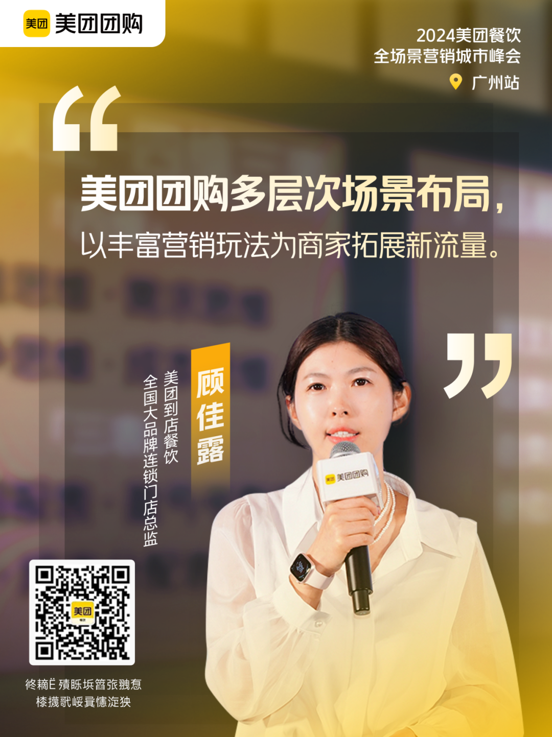 延续餐饮品牌打破传统营销边界,实现全场景品牌曝光的话题,美团到店餐饮全国大品牌连锁门店总监顾佳露分享了商家通过三层营销场体系实现精细化运营,为品牌带来指数级增长的方法。