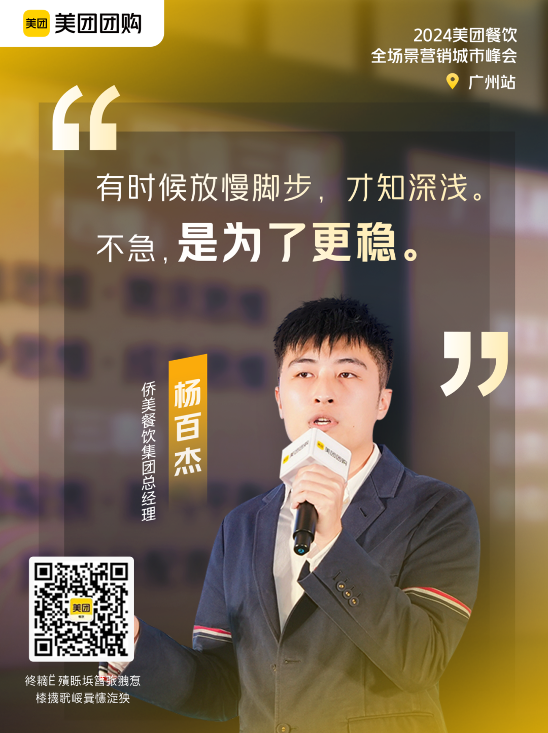 “不急,是为了更稳”,侨美餐饮集团杨百杰总经理受邀分享了品牌在平台营销和运营方面的独家秘籍,与现场商家交流品牌长效发展经验。