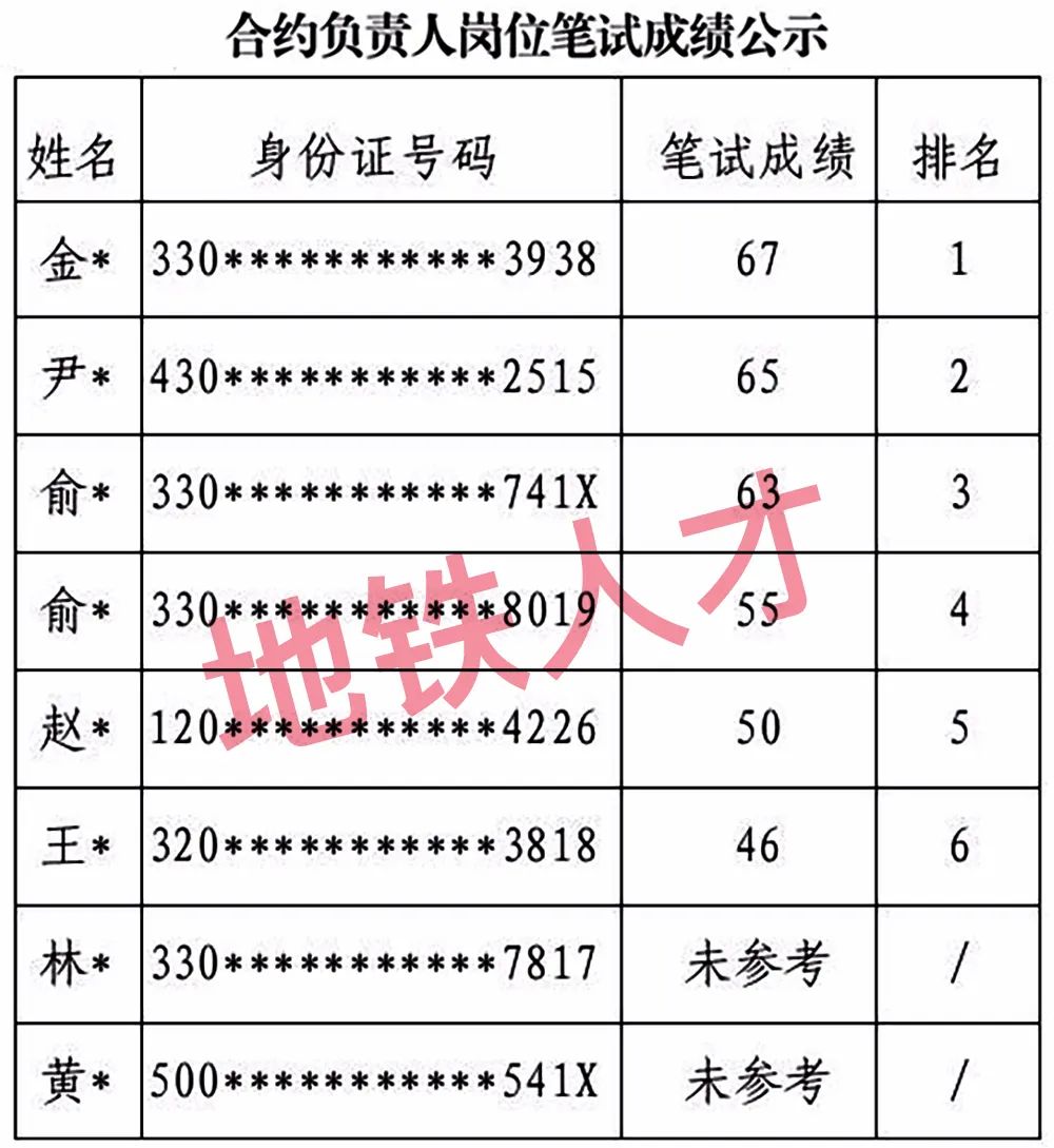 合约负责人岗位笔试成绩