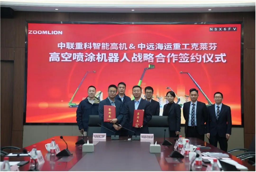 4月12日,湖南中联重科智能高空作业机械有限公司(以下简称中联重科智能高机)与中远海运重工克莱芬船舶工程有限公司战略合作签约仪式在湖南长沙举行。双方将围绕船舶修造领域自动化喷涂设备应用展开深度合作,这将成为高空作业机械向具体细分领域渗透,不同行间共享、共建、合作共赢的新典范。