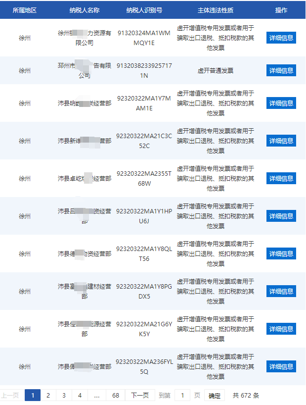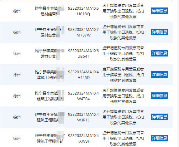 近日,国家税务总局江苏省税务局在其官网重大税收违法失信案件信息公布栏公布了一批虚开增值税专用的公司信息,其中徐州有600家企业因虚开发票被罚款,而沛县、睢宁企业居多。