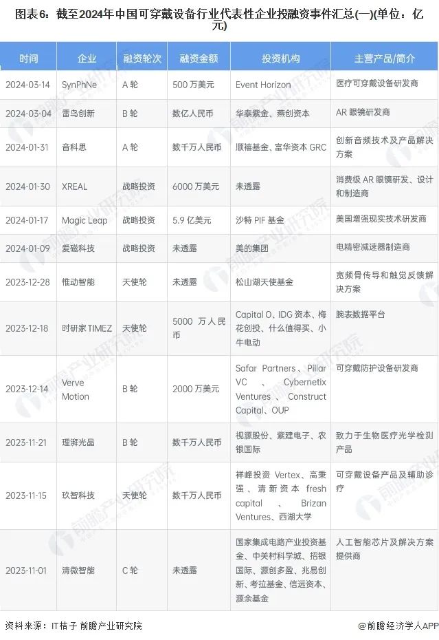 5、可穿戴设备行业投融资及兼并重组总结
